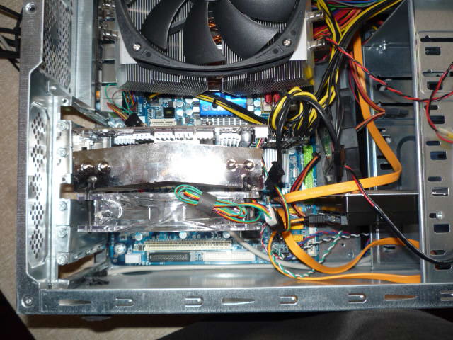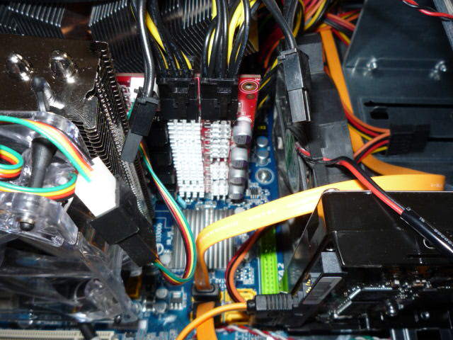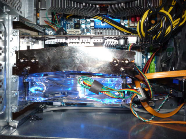 Ich hänge noch ein paar Bilder an. Habe z.B. noch einen 80mm Lüfter auf meine Festplatte gestellt, um die Spannungswandler aktiv zu kühlen. Ohne Erfolg. Die Temperatur ging genau so schnell wieder hoch.