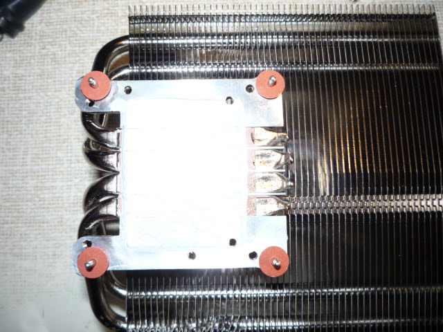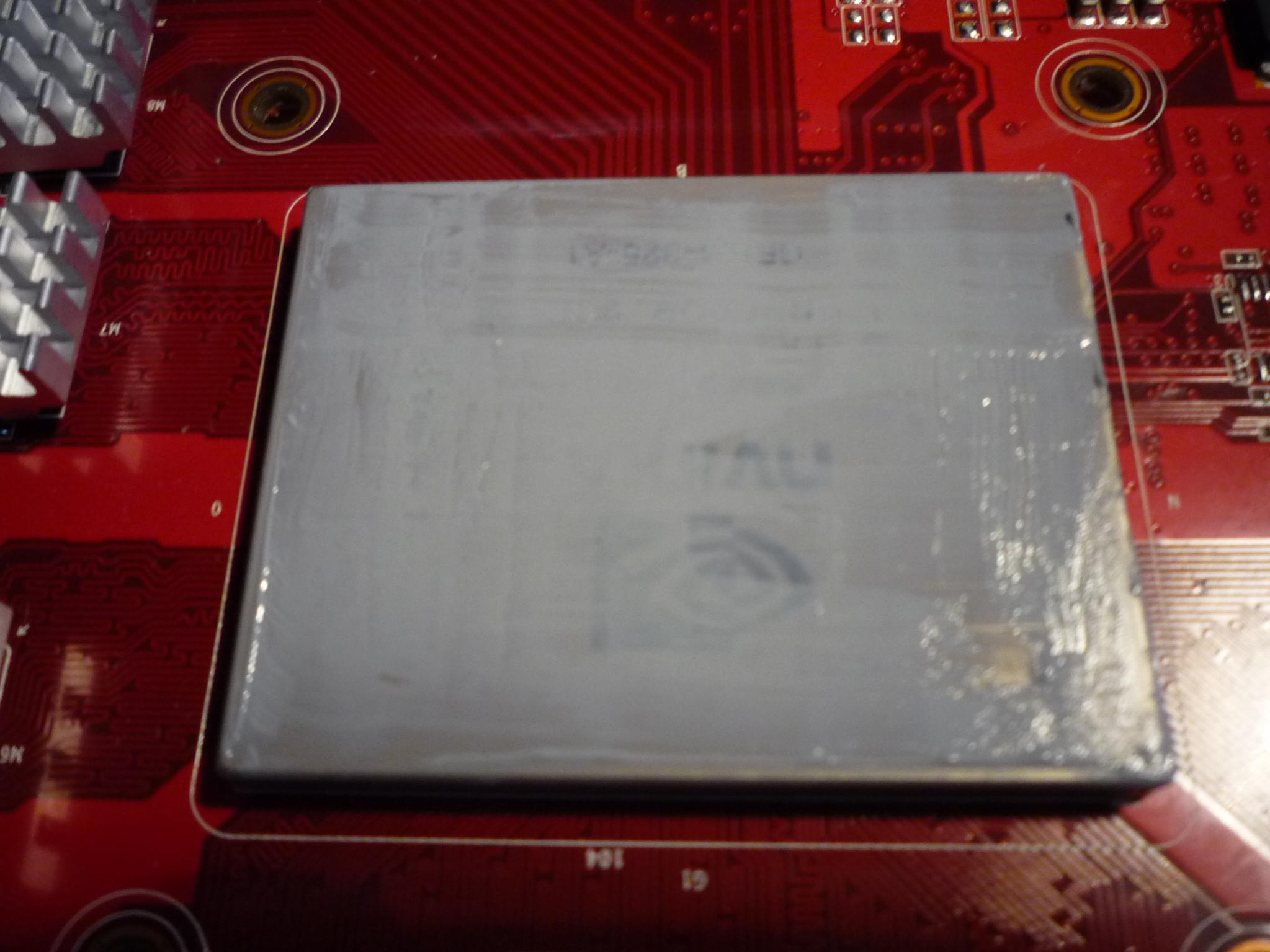 Allerdings finde ich folgendes Merkwürdig: Den Kühlkörper kann ich ohne weiteres anfassen. Er ist vielleicht handwarm. Gleiches gilt für die Kühler auf den V-RAMs. die Spannungswandler sind schon ne Ecke heißer, ließen sich wenn auch unter Schmerzen auch noch anfassen.