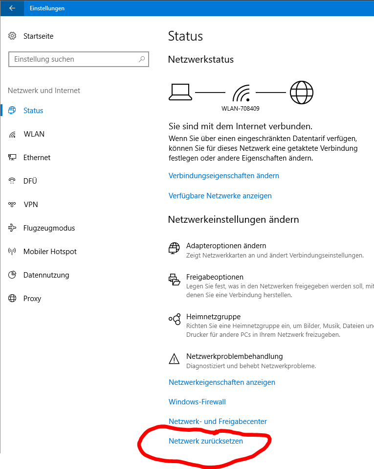 Hat jemand vielleicht eine Idee, wie ich das Netzwerk neu aufsetzen kann ?