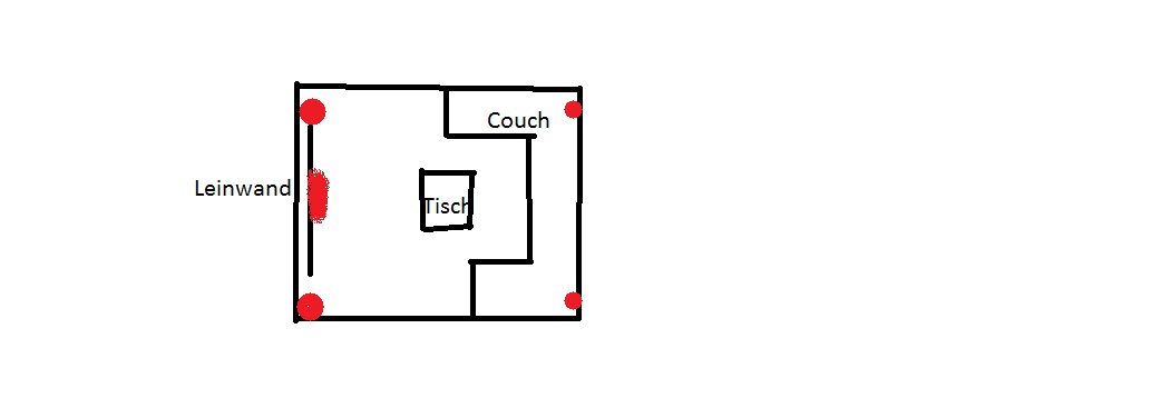 Die an der leinwand sollen Standboxen sein, Höhe ist eigentlich egal. Die boxen hinter der Couch können nicht gestellt werden sondern werden an die Wand gehängt. Daher dürfen diese nicht allzu groß werden.
