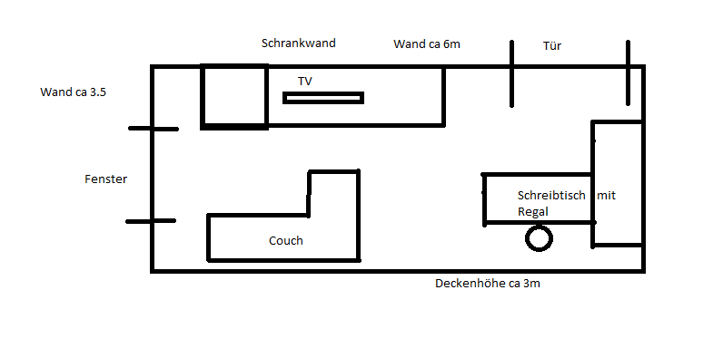 Kannst du eine Skizze/Bild vom Raum machen? Wie aufgestellt werden soll.