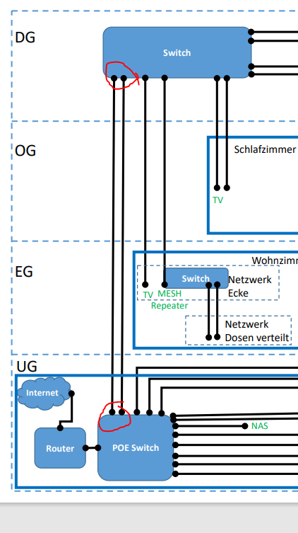 Kann ich das Konzept, so wie dargestellt mit POE switches und "normalen" Switches so aufbauen? Der Router und der POE Switch sollen im Keller sauber in einem 19 Zoll Netzwerkschrank verkabelt werden. Ich habe eine 1000 Mbit Kabel Leitung Vertrag bei Vodafone. Bisher mit der Vodafone Station. Bin aber gerne bereit diese gegen einen guten Router auszutauschen.