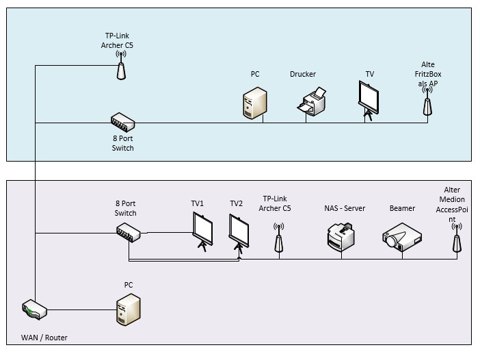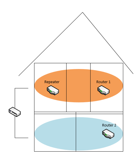 aktuell gibt es im ersten Stockwerk des Hauses einen Internetanschluss (WLAN+REPEATER) und im zweiten Stock einen weiteren Internetanschluss (diesmal ohne Repeater). Soweit so gut, das läuft wie Schmidt's Katze.