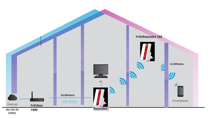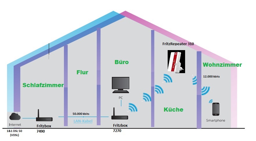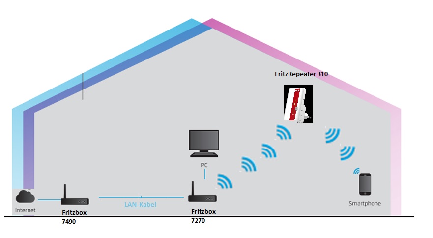 ---> die 7270 gibt ein WLAN-Signal an meinen Fritz-Repeater 310 weiter