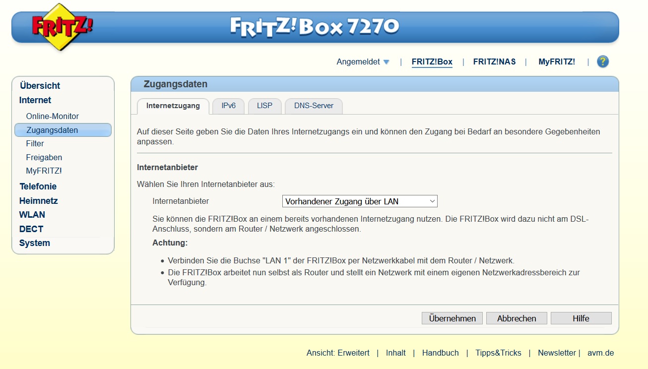 ---> von dort ein LAN-kabel (durch die Wand) in den LAN1-Port meiner Fritzbox 7270