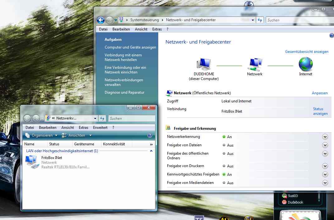 Fritzbox -> Vista- PC Lankarte -> Internet Vista- PC <- funktioniert