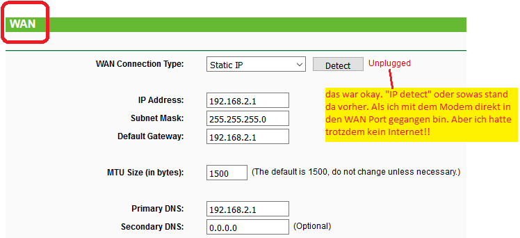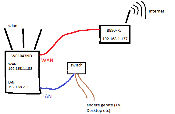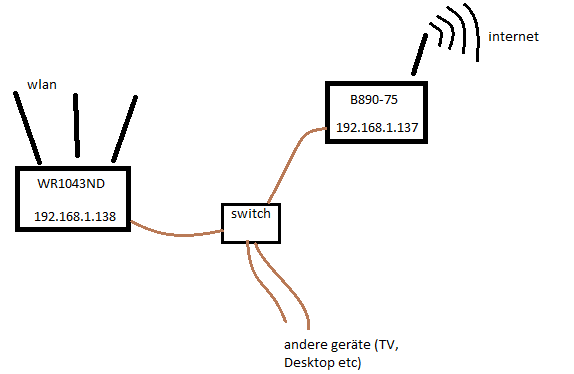 Mein WLAN Router dient halt nur als DHCP Server/MAC-Filter und zum Daten-Wlanen eben. Es klappt auch alles super. Nur eben nichts was der Router selber regeln könnte und mit dem Internet zusammenhängt. WLAN Router: TP-Link WR1043ND.