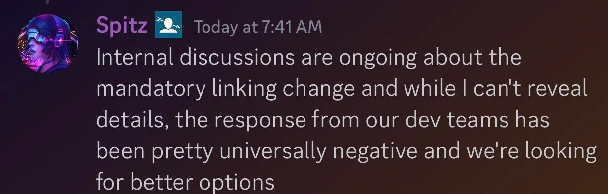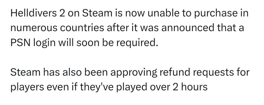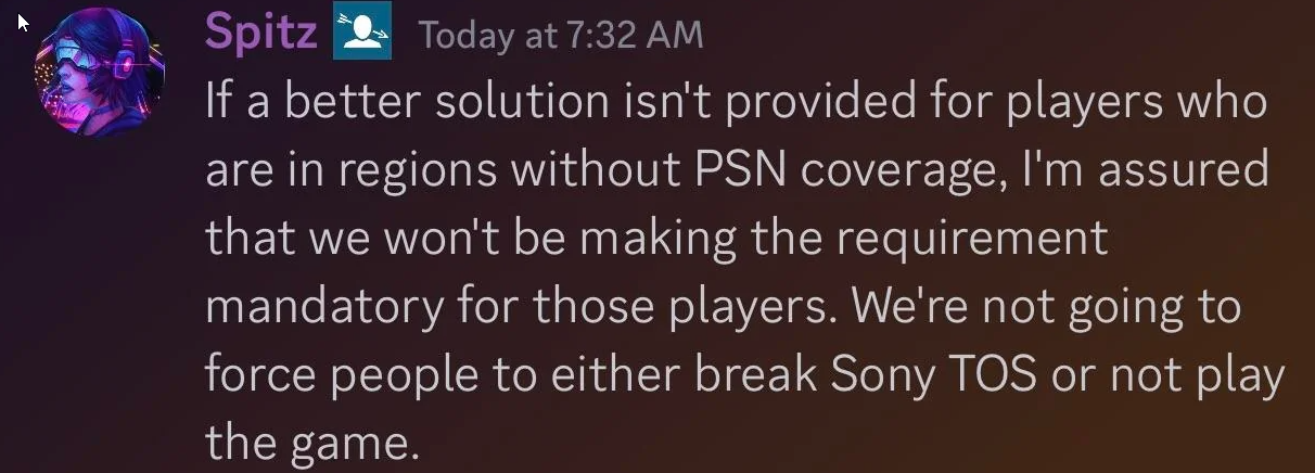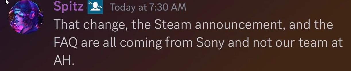 ich auch und seit 2023 pre release stand auf der Steam Seite "requires a 3rd party account from Sony" + wenn man das Game gestartet hat stand es extra nochmal... also weiß ja nicht wer sich dann denkt "hühü will ich nicht aber ich Kaufs trotzdem vielleicht funktioniert es ja." dann zweifle ich wirklich an der Menschheit... müssen wohl so eine Warnung mit einem lauten alarmton und 10x bestätigen ob man den Text gelesen hat (am besten wie die captchas von manchen websiten die dann die Vorraussetzungen abfragen xd )Major Koenig schrieb:Hab das von Anfang an direkt beim ersten Spielstart (Release), völlig freiwillig gemacht. Verstehe nicht ganz warum man immer ein riesen Fass aufmachen muss. Jeder so wie er denkt und gut ist..