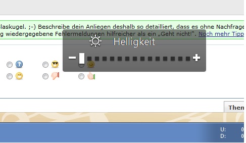 Alle FN-Tasten funktionieren, bei der Helligkeitssteuerung kommt der Dialog und ich kann zwischen einem und keinen Balken wählen, aber es ändert sich nichts.