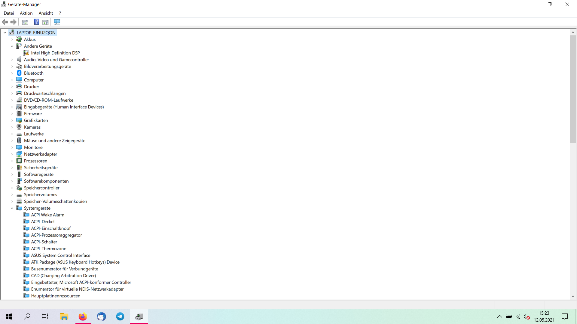 Im Gerätemanager findet sich lediglich unter "andere Geräte" der "Intel High Definition DSP" mit gelbem Ausrufezeichen und Fehlercode 28 (kein Treiber installiert). Sonst keine Audiogeräte zu finden.