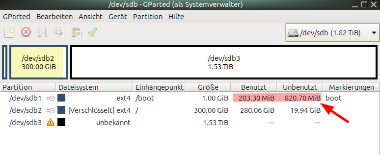 Dann guck doch drauf, auf die 0-Byte Partition, was da zuletzt geschrieben wurde, warum die voll ist.santander schrieb:Dass nur 0 Bytes freier Speicher angezeigt werden, ist in meinen Augen das Hauptproblem.