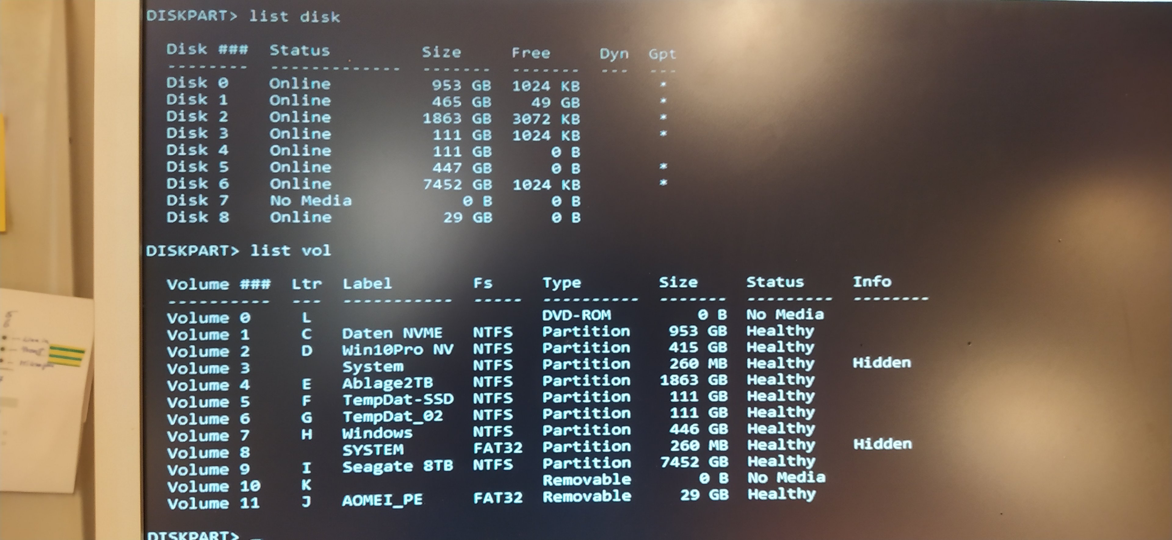 Das zeigt dann diskpart