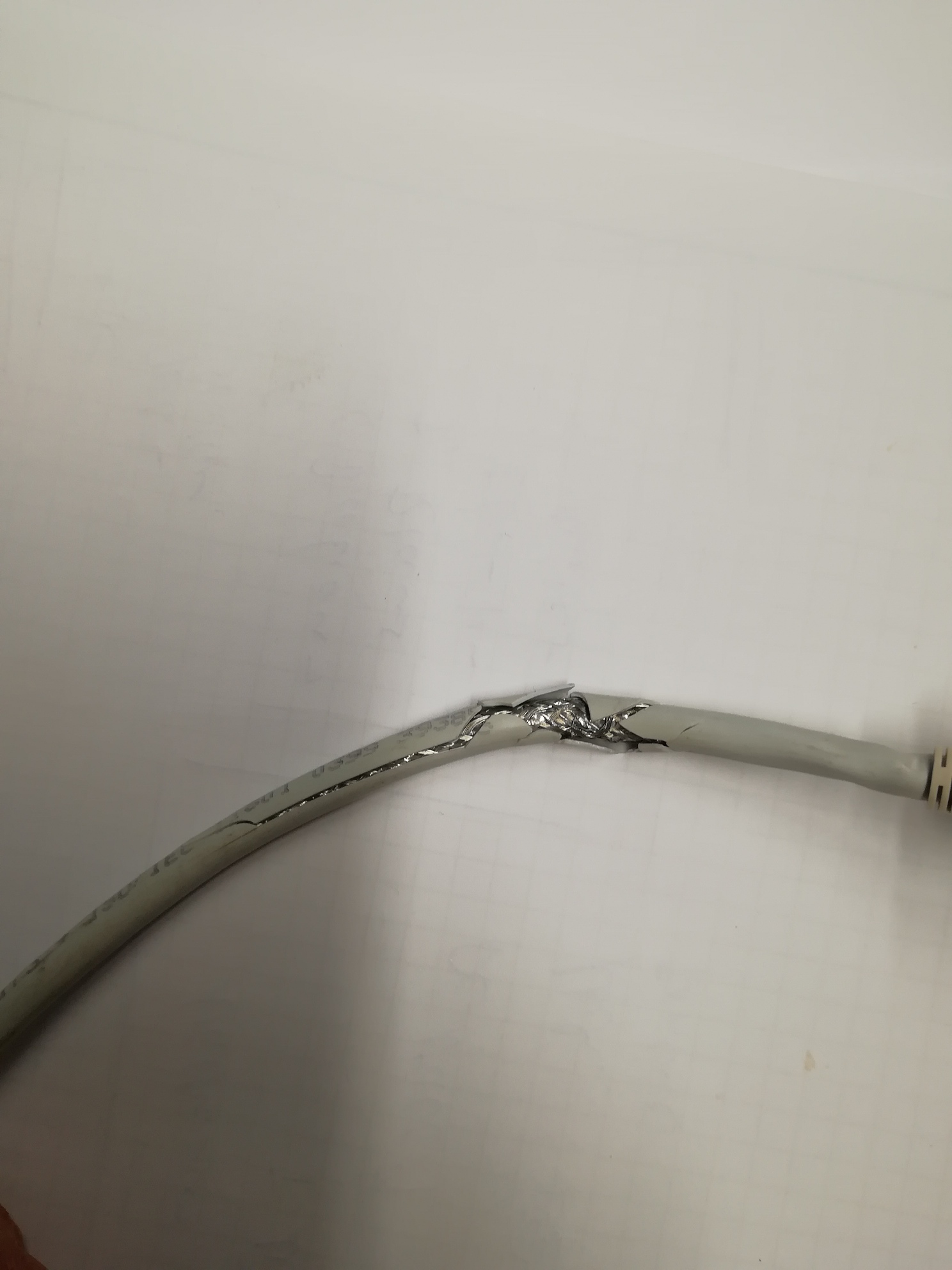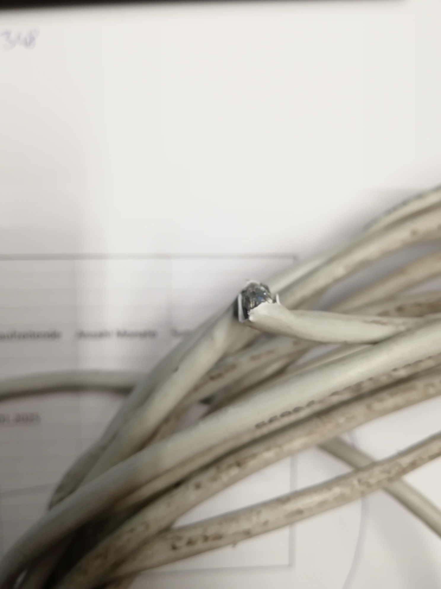 Jedenfalls habe ich da jetzt ein ca 30cm langes Stück Netzwerkkabel aus dem Mülleimer geholt, um ein paar diverse Knick- und Biegetests damit zu machen.