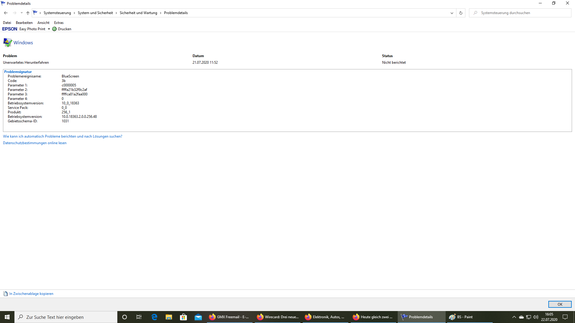 Den jetzigen Win10-Rechner betreibe ich seit ca. 5 Monaten, in diesem Zeitraum hatte ich insgesamt 3 Mal ein Bluescreen; das erste Mal vor ca. 3 Wochen, die anderen beiden Male heute ... Also insgesamt eigentlich auch eher selten, monatelang gar nicht ...