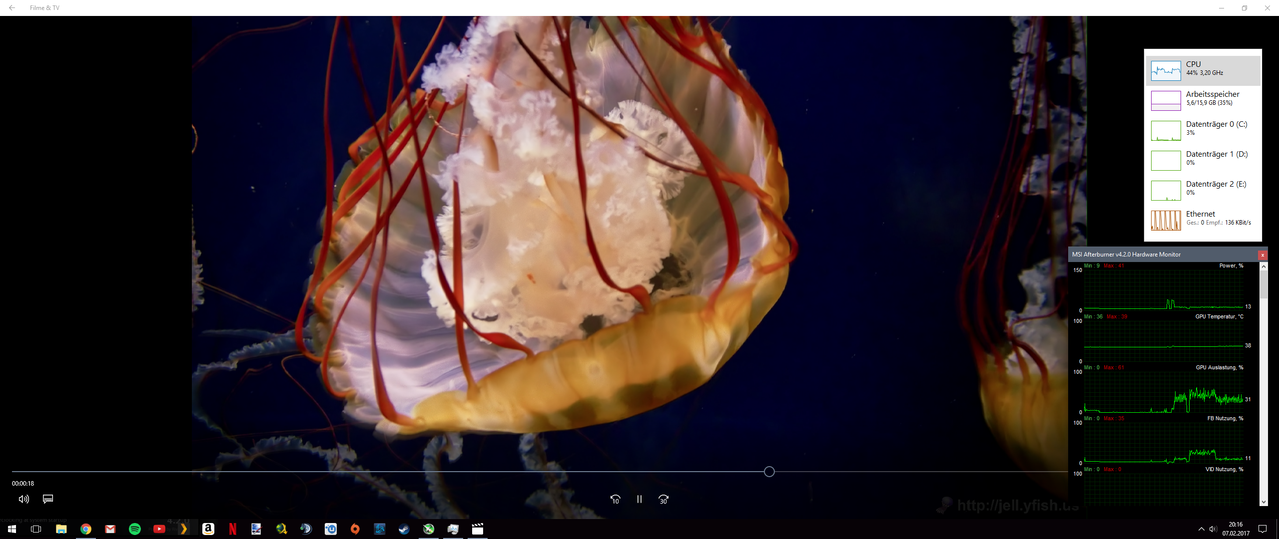 Während H.264 keine besondere Herausforderung darstellt – die Aufgabe übernimmt der vorhandene Decoder – muss die CPU bei HEVC (in FHD) bereits sichtlich arbeiten. Auf einem vergleichbaren Dual-Core (z.B. Pentium) könnte es vereinzelt zu einer stockenden Wiedergabe kommen. 10 Bit benötigt in diesem Beispiel rund 10,8% mehr Leistung gegenüber 8 Bit. HEVC (in UHD) benötigt zu viel Leistung, sodass eine flüssige Wiedergabe nicht möglich ist. Obwohl das Video nur 30 Sekunden lang ist, schließt sich der Player erst nach knapp 40 Sekunden. Um herauszufinden ob Auflösung oder Bitrate belastender für die CPU ist, habe ich drei weitere Beispiele mit reduzierter Bitrate getestet: