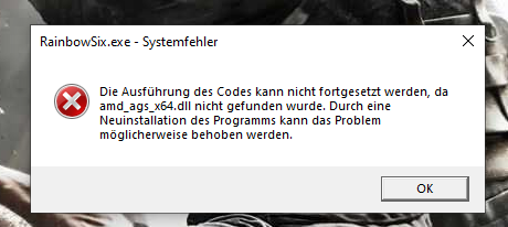 Rainbow Six Hey habe mein PC neu gemacht und Rainbow installiert wenn ich es Starte komm ein Fehler Meldung