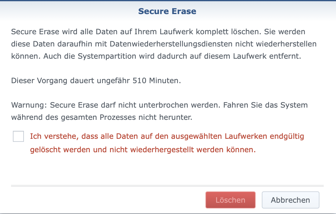 Diese hat er auf seiner Synology mittels Secure Erase "löschen" wollen da er die Platte verkaufen will.