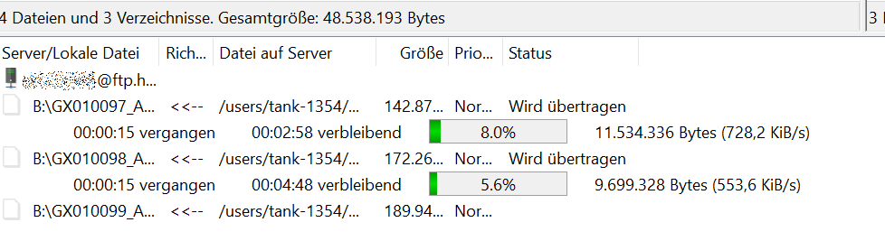 Zum Test ein bzw. drei ca. 150MB Videos, ich komme noch nicht mal an 1MB/s. Habe es auch mit SFTP, FTPS und WebDAV getestet - alles gleich scheiße!