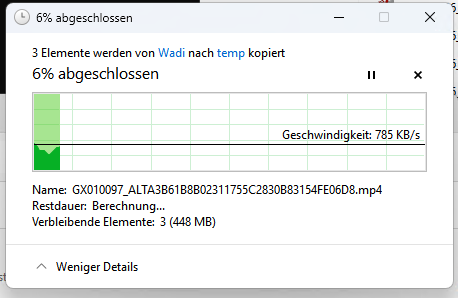 Früher war das kein Problem, hatte erst mein Win11 bzw. irgendein Update/SMB-Konfig im Verdacht, da es aber überall inkl. Ubuntu auftritt, schon seltsam. Umgekehrt komme ich am Handy auf ~14MB/s.