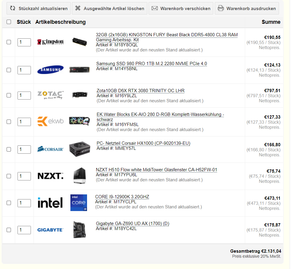 Es soll ein High-End Gaming PC sein, der Preis von dem Komponenten beträgt ca. 2131eur (Nettopreis)