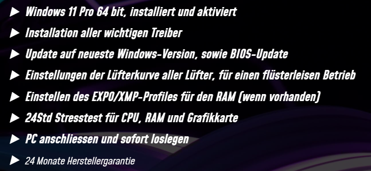 - kein Interesse / nowendiges Knowhow für OC; möchte keine RGB Beleuchtung und ein schlichtes optisches Erscheinungsbild