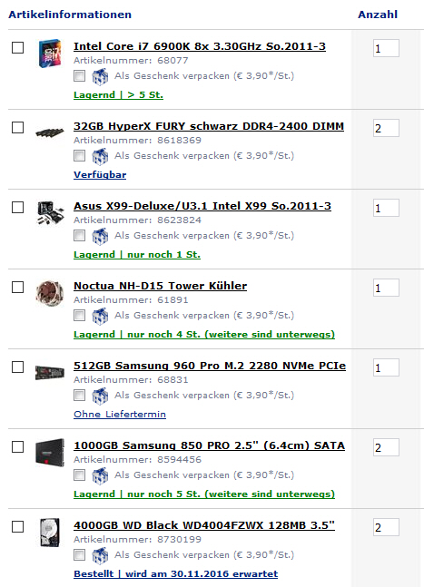 Meine 2 Zotac 980Ti und mein 1200W Corsair NT übernehme ich aus meinem aktuellen Rechner. Tower kommt spontan.