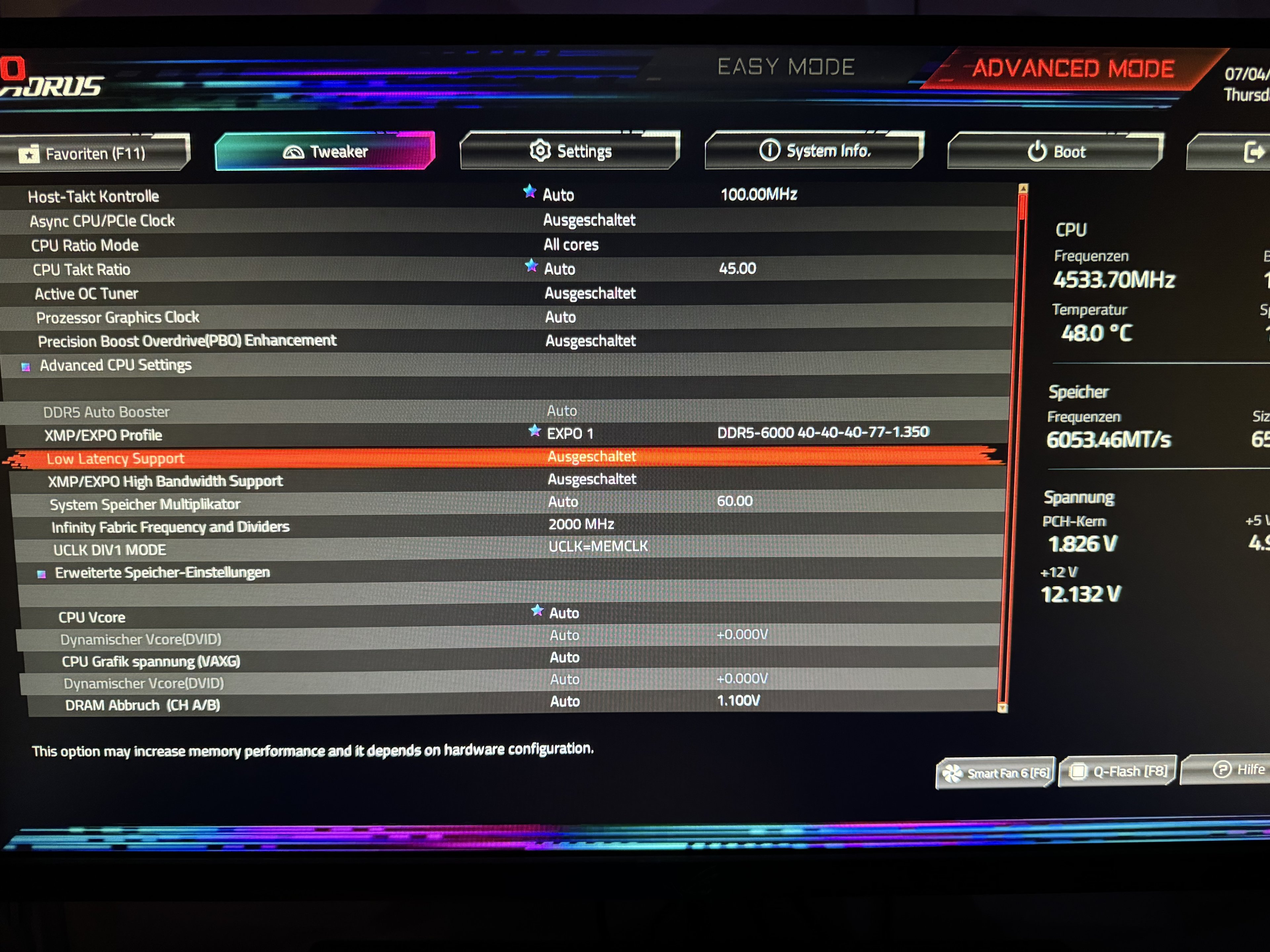 EXPO Profil im Bios > 6000 MhzAlexander2 schrieb:läuft dein ram überhaupt noch auf beworbenem tempo? der hat ja auch mit der cpu leistung zu tun?