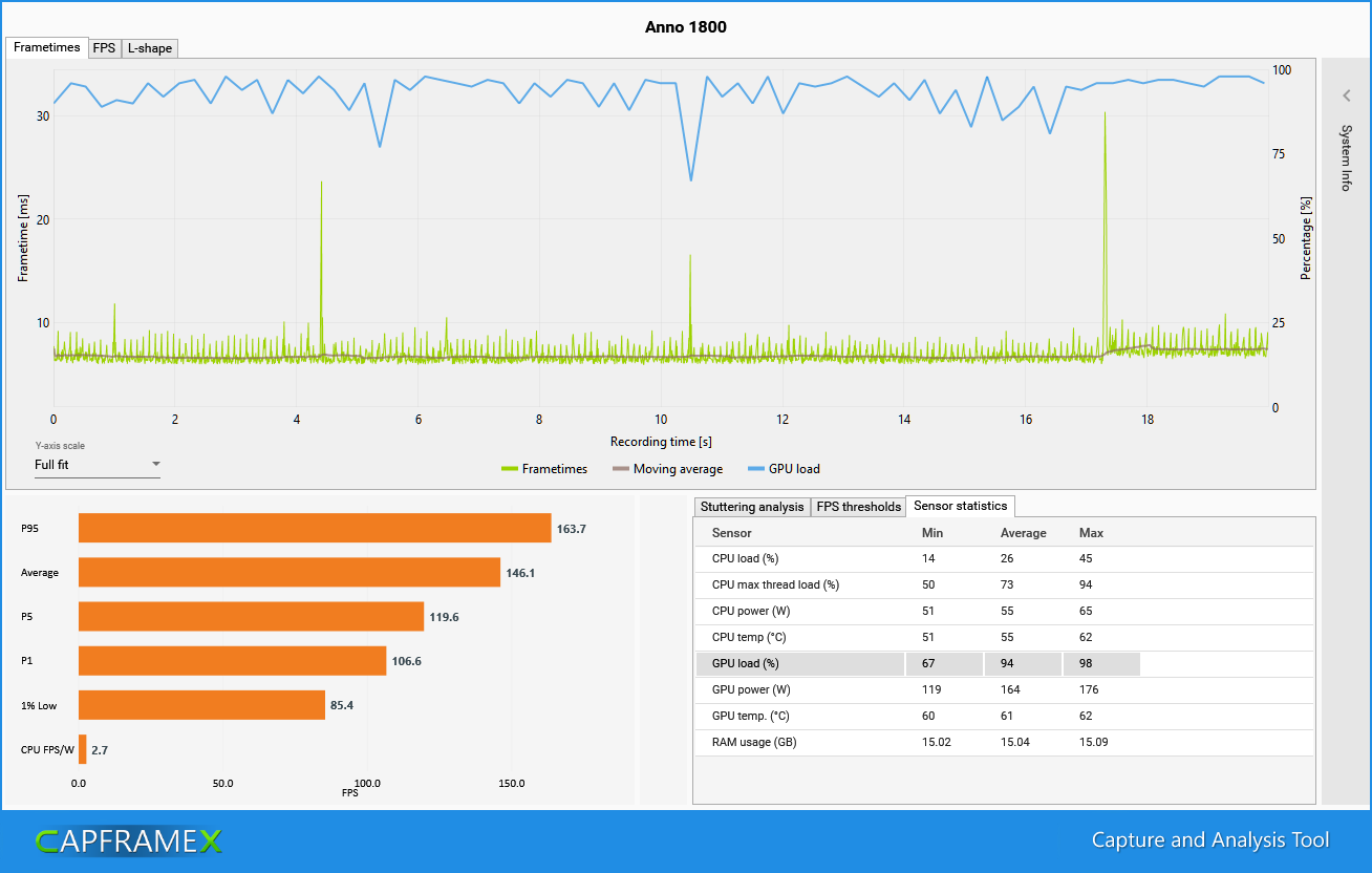Wenn man nämlich mehr will, dann spricht dagegen, dass CapFrameX alles, was mit Analyse zu tun hat, besser kann^^