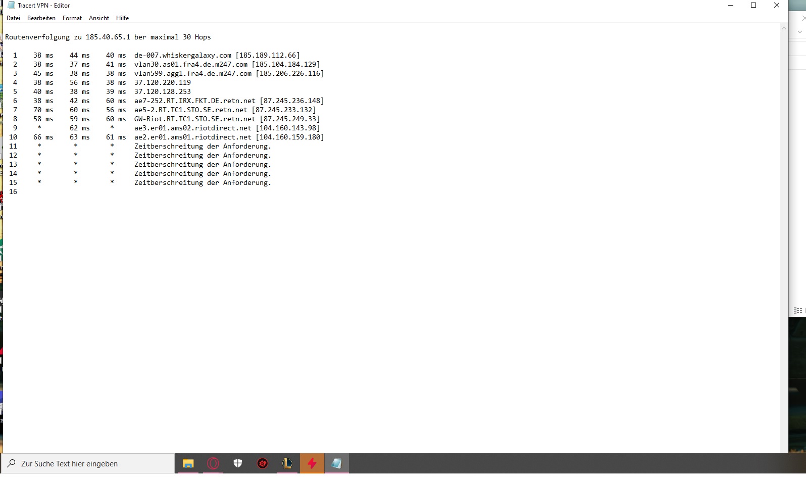 seit einiger Zeit bekomme ich Abends zur IP 185.40.65.1 (League of Legends) einen viel zu Hohen Ping.