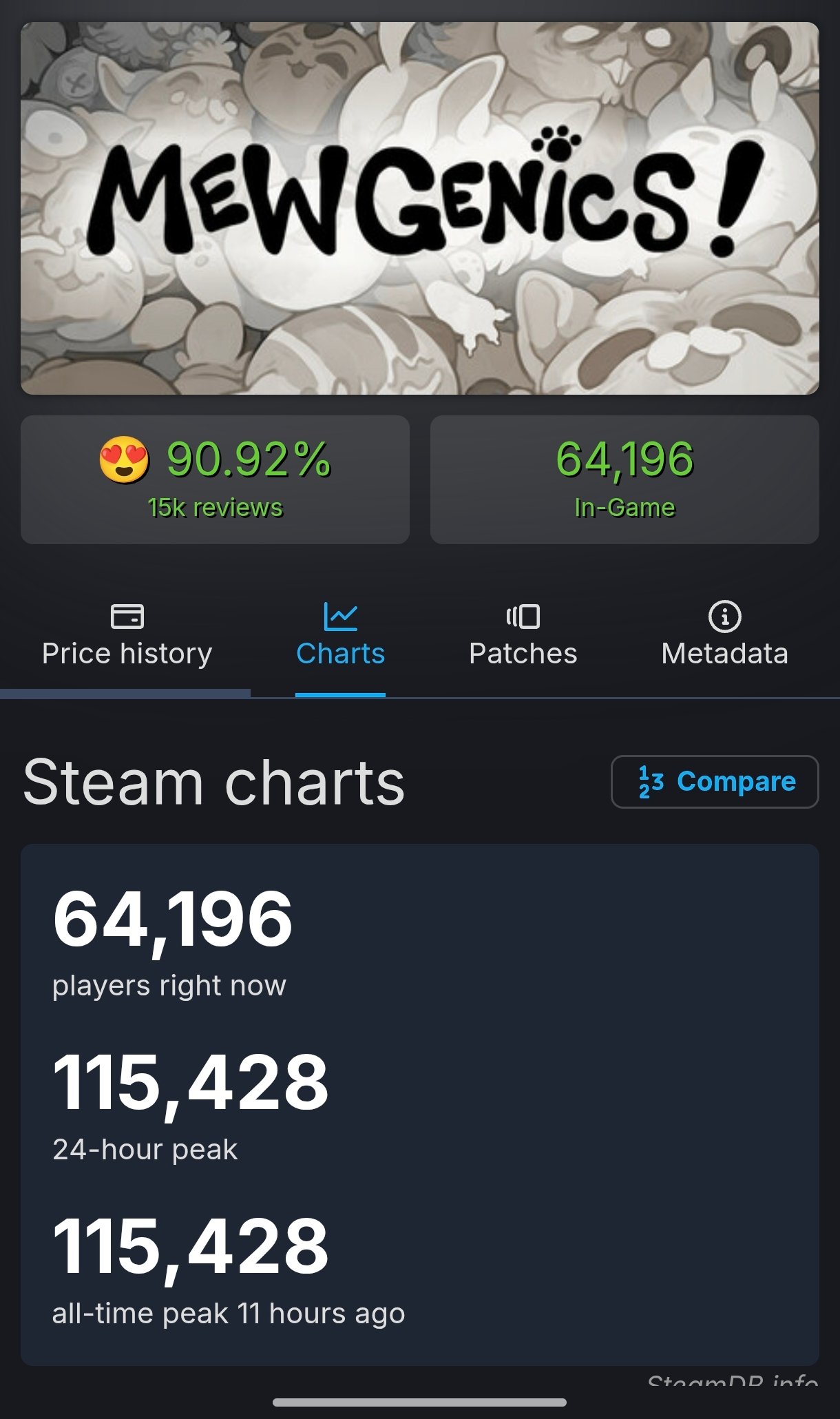 Hier mal der charts ab 26.01, also Release, weil steamcharts (in der News) zählt erst ab 28, wo das Spiel bereit 80% seiner Spieler und Spielerinnen verloren hat.