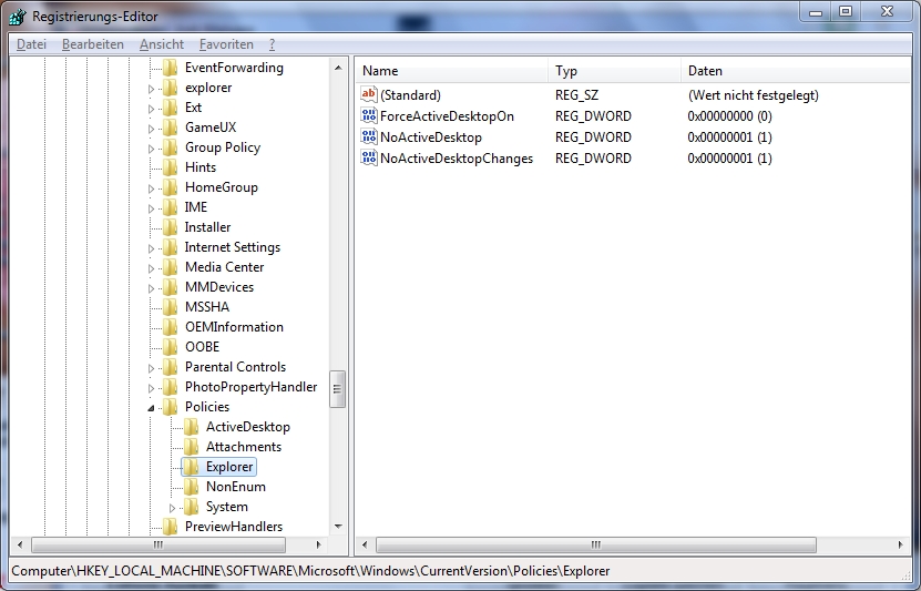Und auf dem dritten die stelle in der regestry.