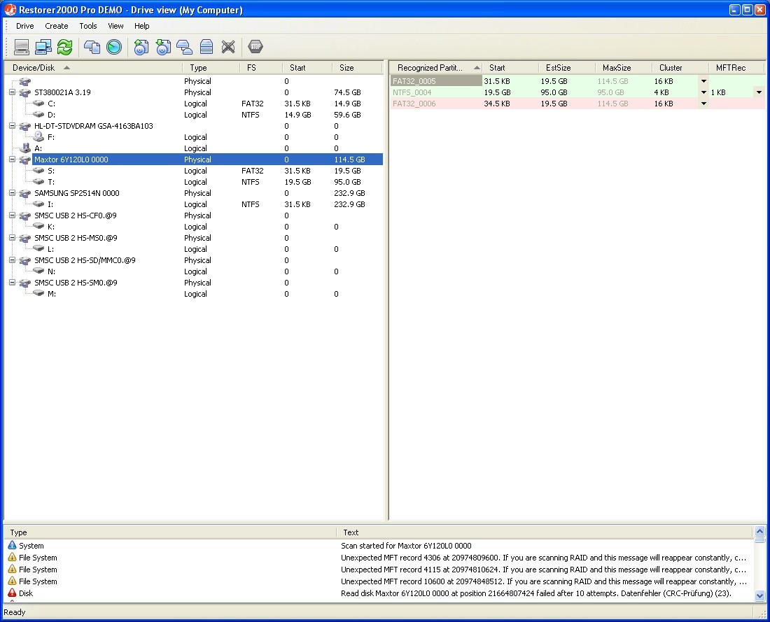 Für alles brauchst du die Vollversion am besten Restorer2000 Pro bei verschwundene Laufwerke.
