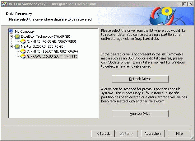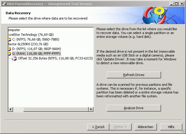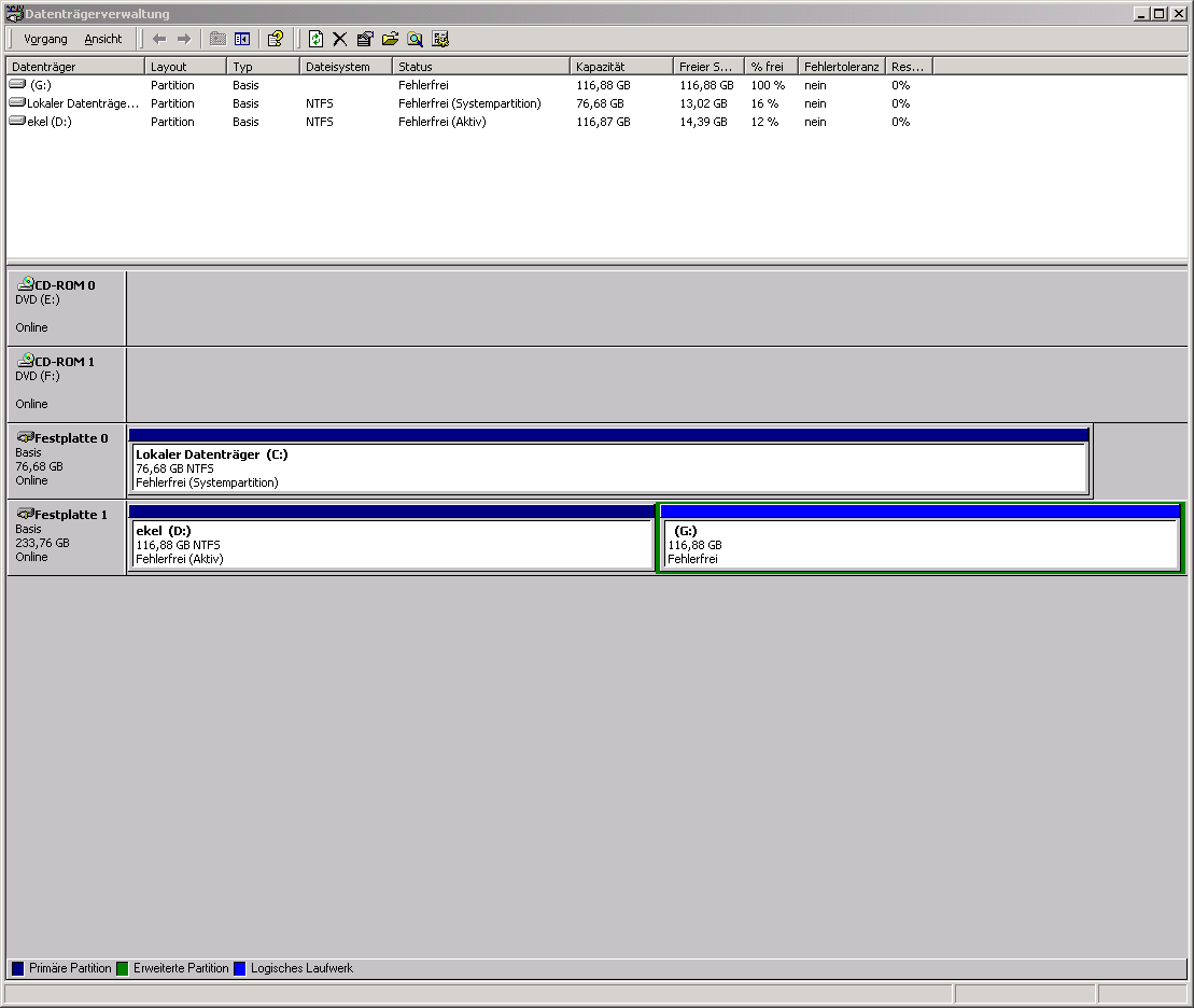 zweite Festplatte/zweite partition(G-„kasia“), die mit dem programm „MaxBlast 4“ partitioniert ist - in D „ekel“ und G „kasia“, zugreifen. unter arbeitsplatz wird sie als „Wechseldatenträger G“ dargestellt und wenn ich versuche auf sie zuzugreifen kommt folgende fehlermehldung: „Auf G:/ kann nicht zugegriffen werden. Die Datei oder das Verzeichnis ist beschädigt und nicht lesbar.“.
