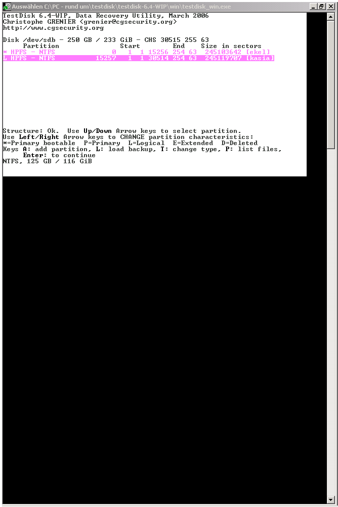 ich brauch mal eure hilfe zum „Testdisk“ programm. ich glaube voralleen deine hilfe Fiona da du anscheinend der profie für dieses programm bist.