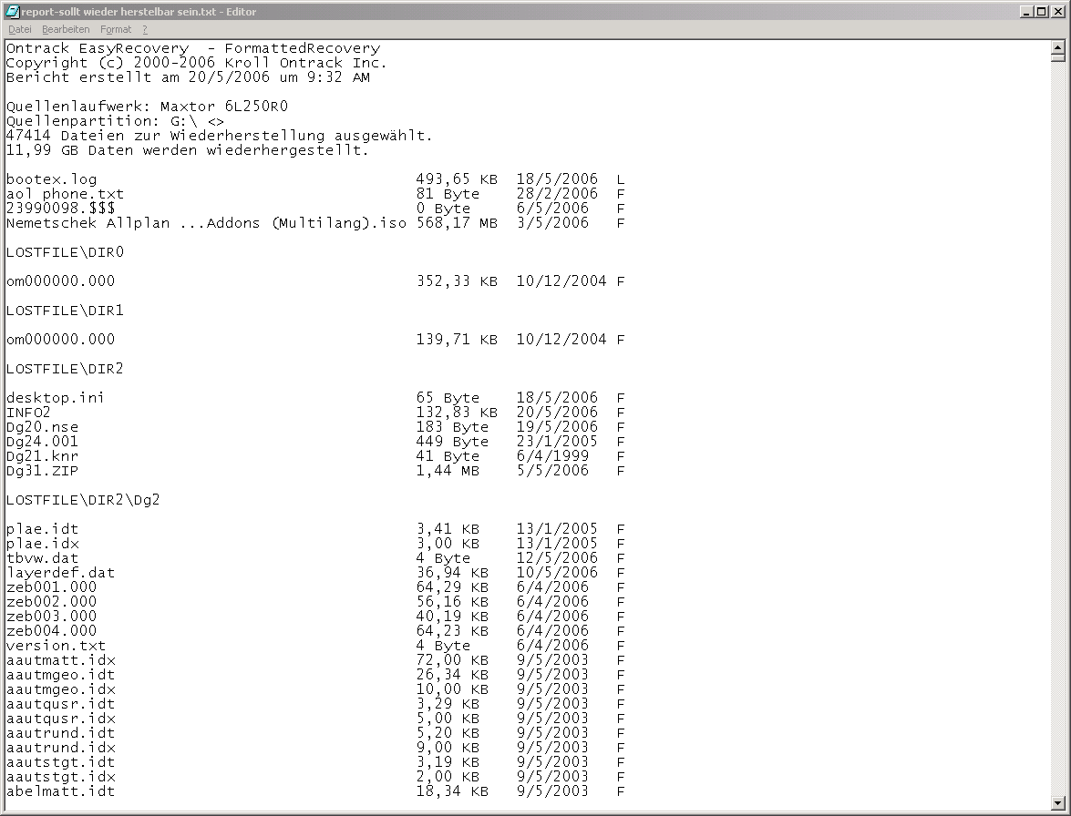 . das einzigste was ich mit diesem programm bis jetzt zustande bekommen habe ist ein scen/analyse der betroffenen festplatte. die text datei die dabei erstellt wurde kann ich allerdings auch nicht verstehen