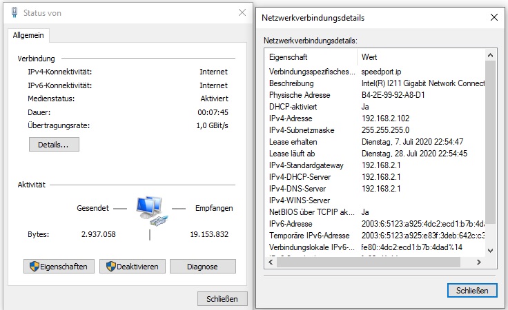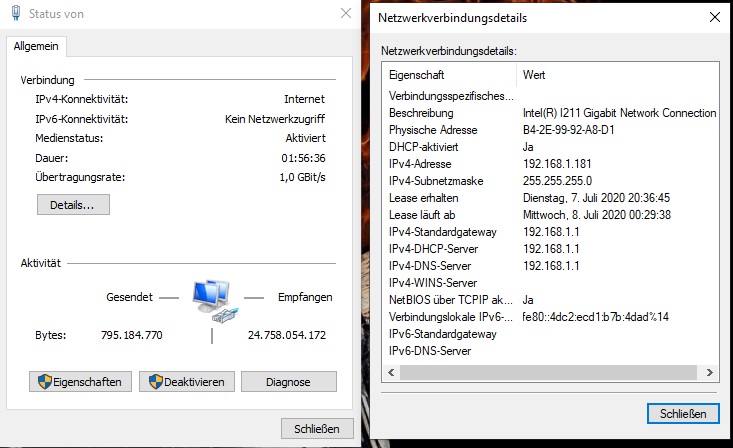 Der PC ist mit LAN Kabel verbunden und mir wird in den Netzwerkeinstellungen bei Übertragungsrate 1,0 Gbit/s angezeigt.
