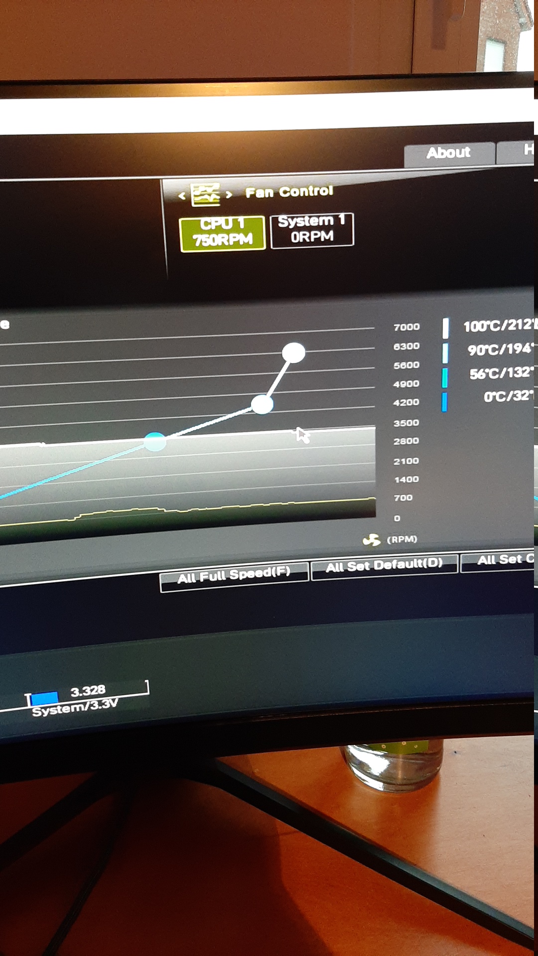 Gegen die Drehzahlschwankungen hilft ein einfacher Eingriff in die Lüfterkurve. Im BIOS als erstes das Temperaturintervall auf 3s einstellen. Dies nimmt dem Lüfter schon mal einen großen Teil seiner "Nervosität".