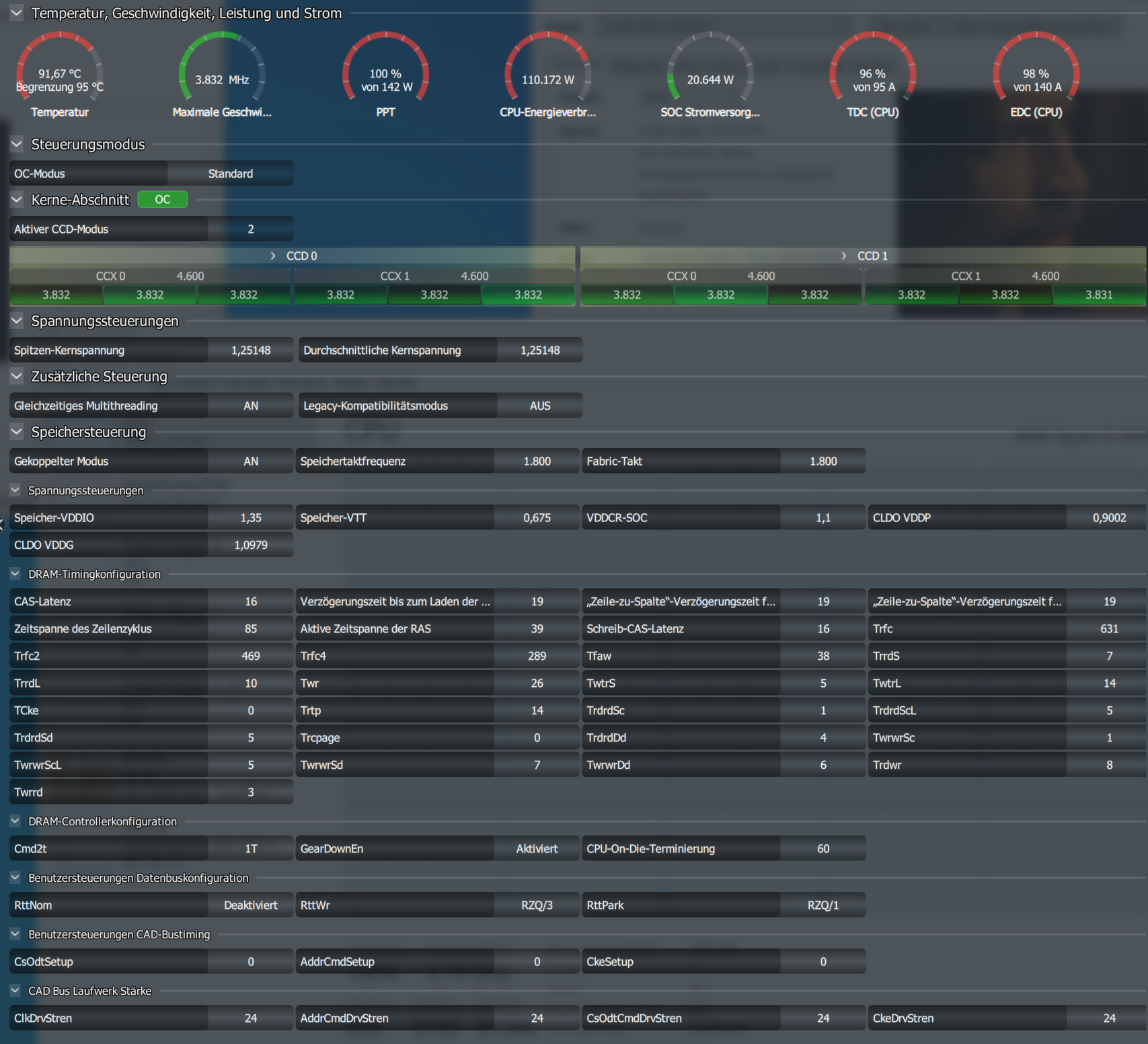Hab mal noch einen Screenshot vom Ryzen Master angehängt. OC betreibe ich "prinzipiell" nicht, alle Werte sind also Standardwerte.