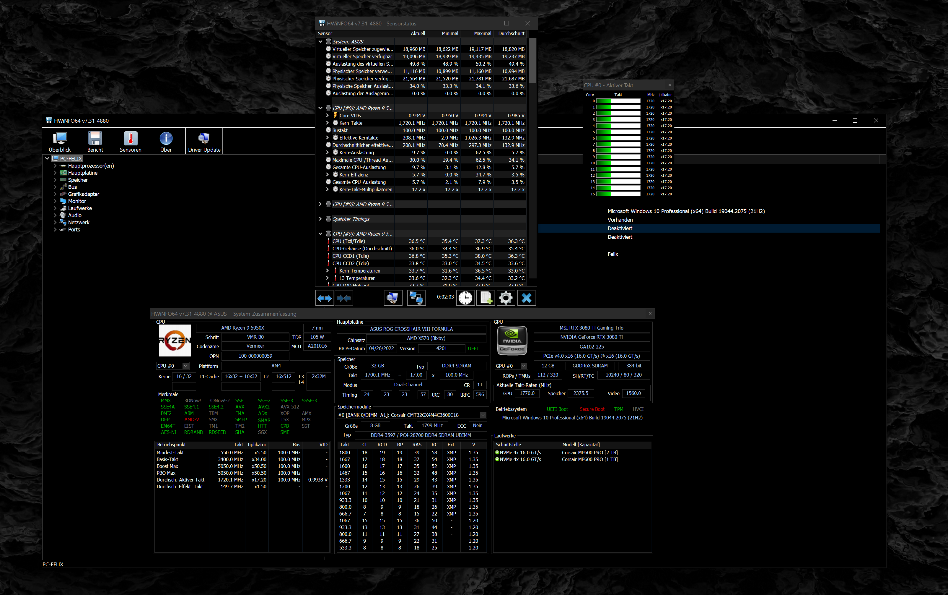 - Kühlung: Corsair H170i Elite Capellix