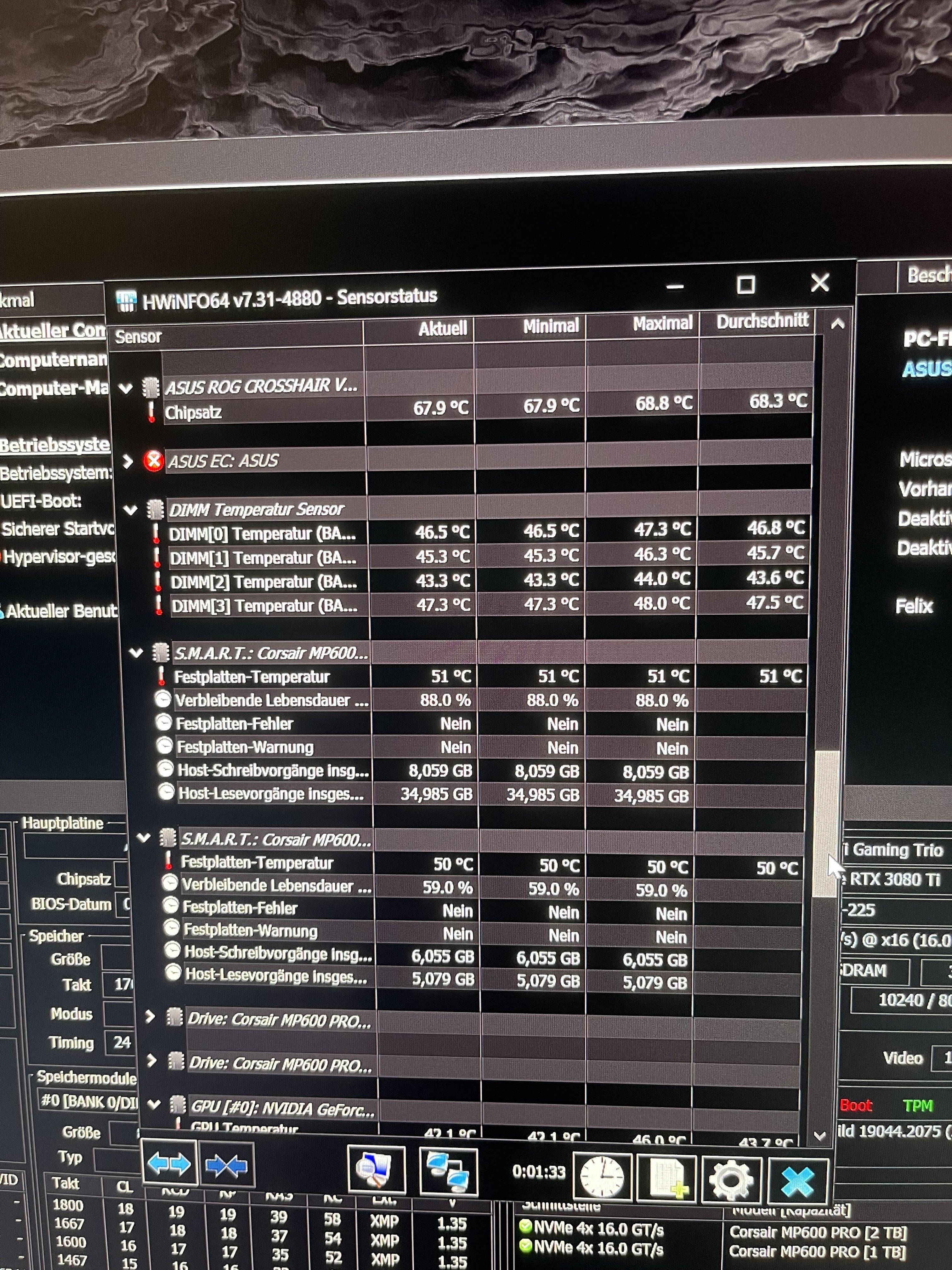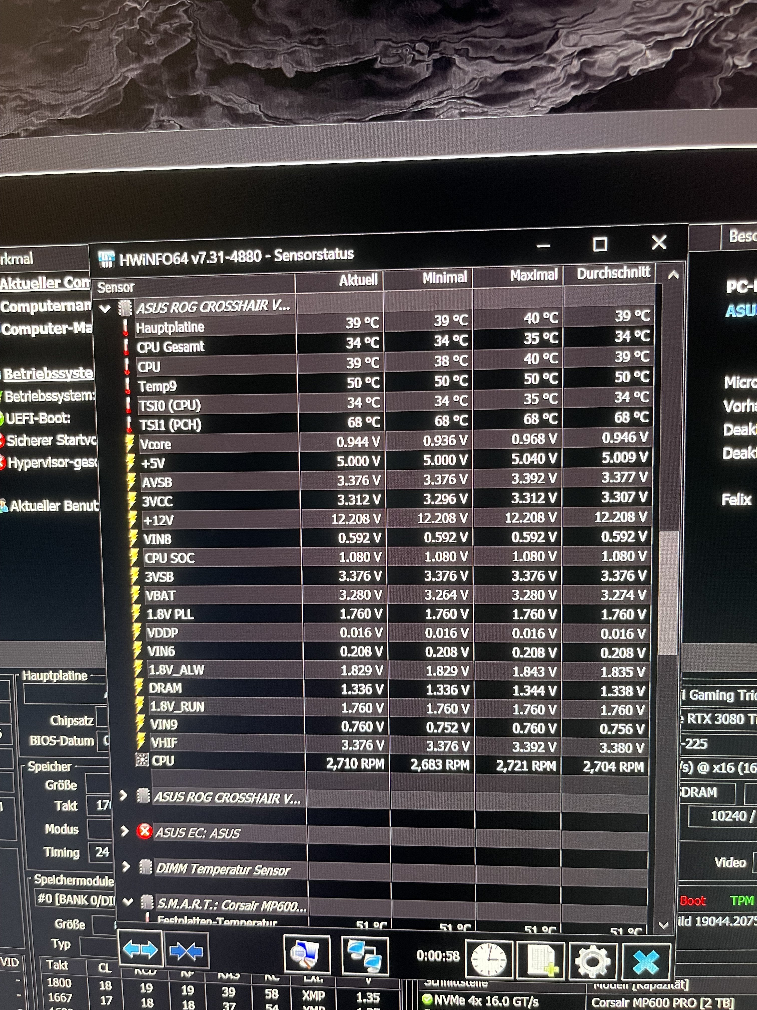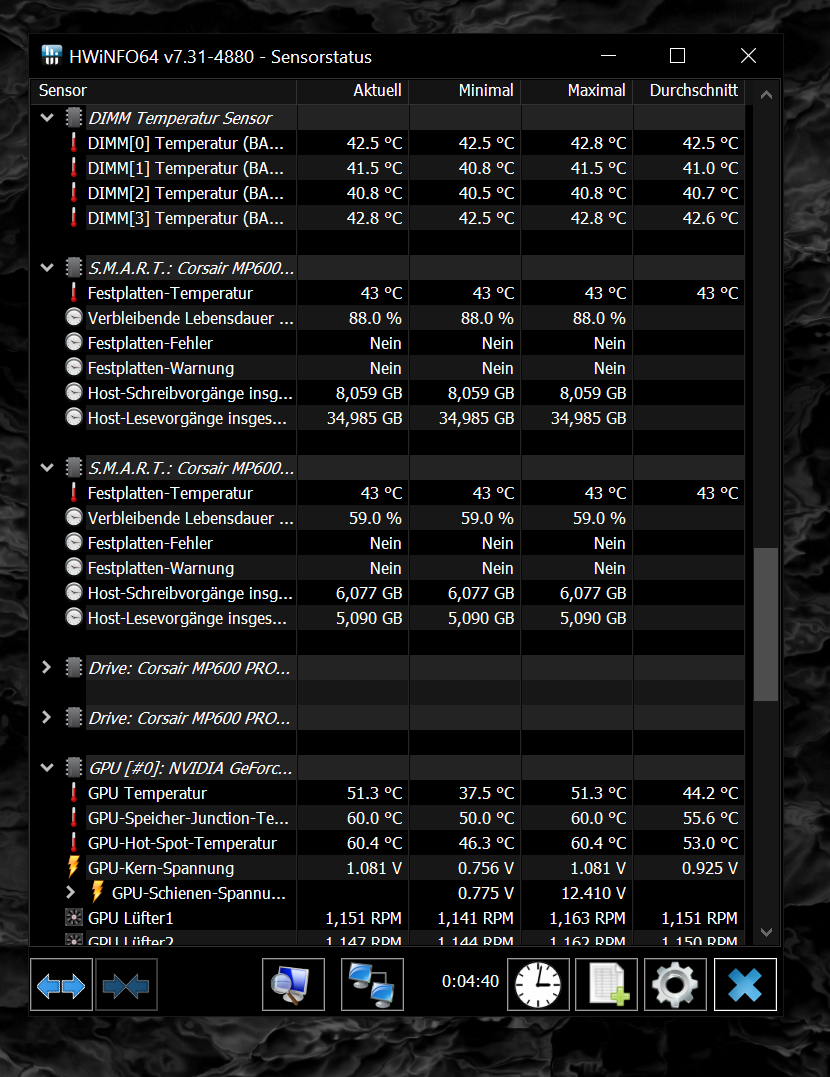 - Arbeitsspeicher (RAM): Corsair 32GB DDR4-3600