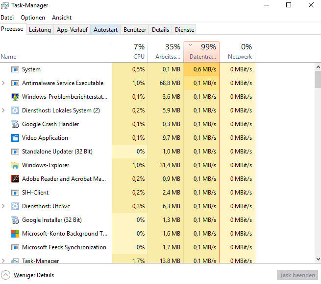 Warum lässt der Rechner eigentlich in Kenntnis meiner Nutzung zu, dass andere Kackservices einfach das komplette Ding lahmlegen? Minutenlang 99% HD-Auslastung, nichts geht mehr.