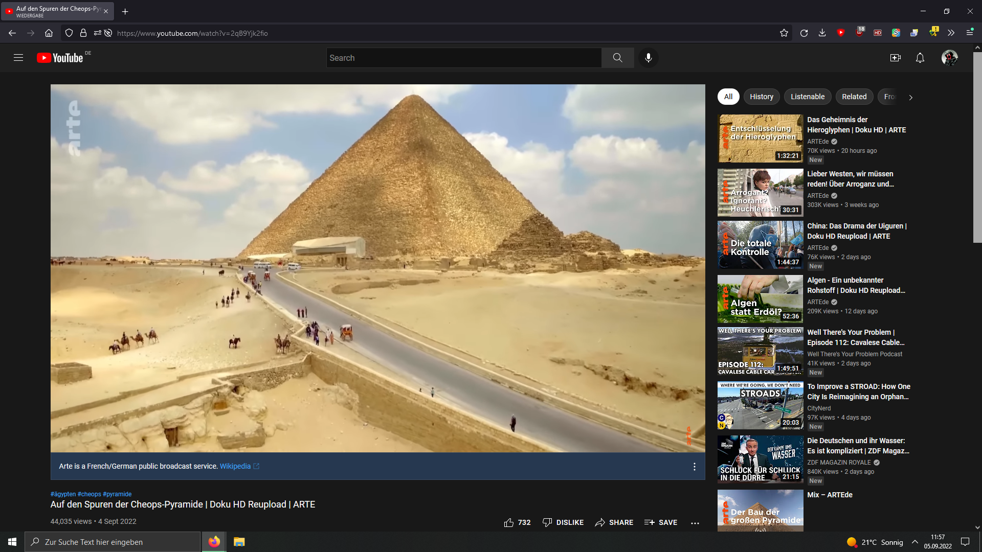 Hier mal ein Screenshot, wie YT bei mir aussieht. Üblicherweise habe ich den Player noch über die volle Breite, habe die Ansicht mal geändert so dass ich auch die Vorschläge rechts vom Video bekomme. Das ist übrigens auch die Ansicht, die ich bekomme wenn ich YouTube in einem anderen Browser (Chrome) ohne Google Login öffne.
