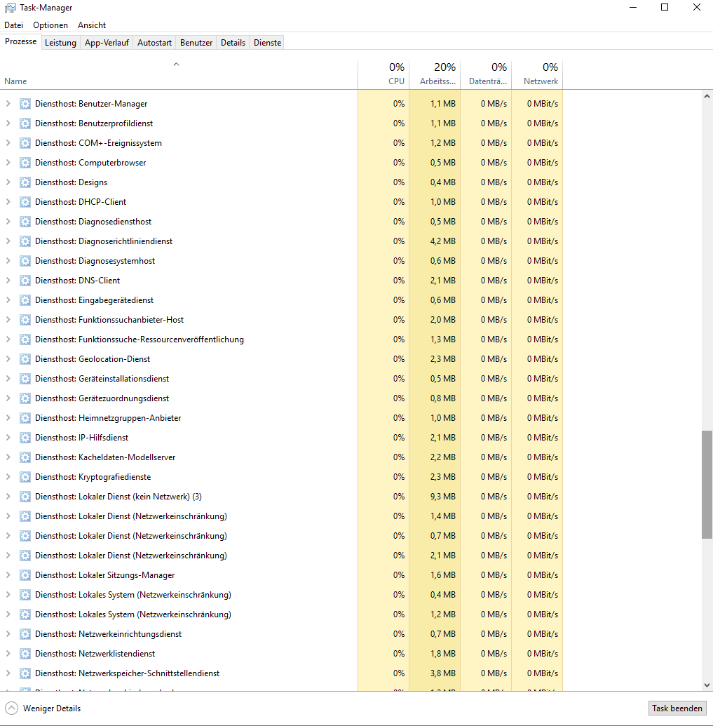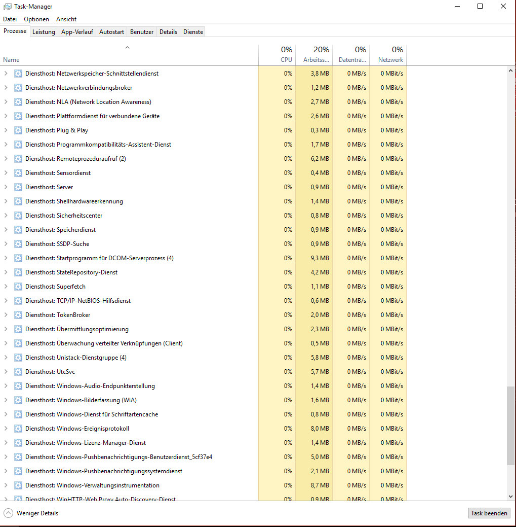 Aber ansonsten ist das normal, zumal einige Programme aus mehrere Subprozessen bestehen, siehe Steam, und die Anzahl der Prozesse am Ende nichts aussagen muss.