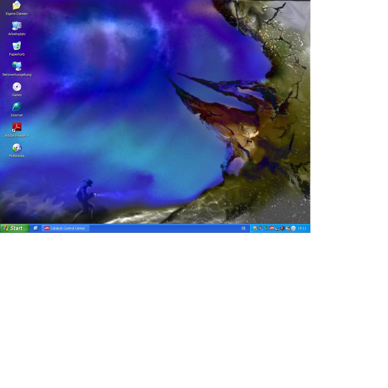 Ich habe im CCC nachgesehen, ob die Farbeinstellung verändert wurden - die waren aber auf Default. Die alten Treiber habe ich vorher alle deinstalliert und dann den von der CD genommen.