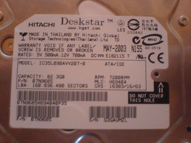 Hier der Aufkleber zur Erkennung der Festplatte: