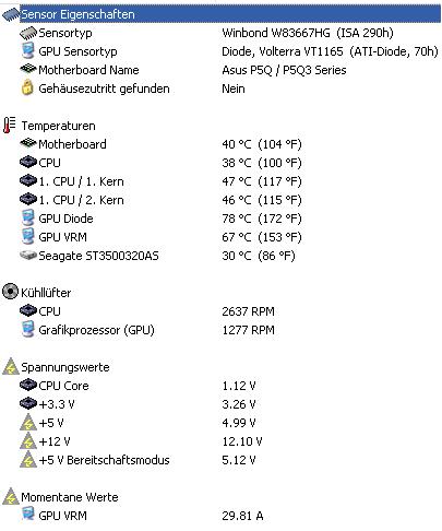 ich habe eine ATi HD4850 in einem Lian Li Gehäuse mit zwei Gehäuselüftern (vorne, hinten). Die Graka erreicht 106° beim World of Warcraft zocken. Das mit der Manuellen Lüftersteuerung kenne ich schon ich habe aber keine Lust die Profile dauernt Manuell zu ändern sondern ich möchte etwas automatisches. Was kann ich machen? Oder sind 106° geradenoch so i.o.?