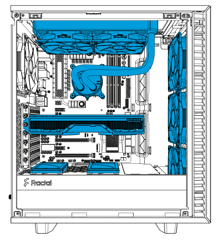 Wasserkühlung für Prozessor mit zwei Lüfter nach oben heraus (be quiet! Silent Loop 2 240mm).