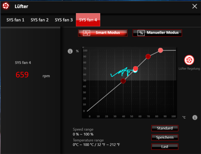 Und selbst wenn ich die Lüfterkurve auf 100% ziehe drehen sie mit maximal 850rpm