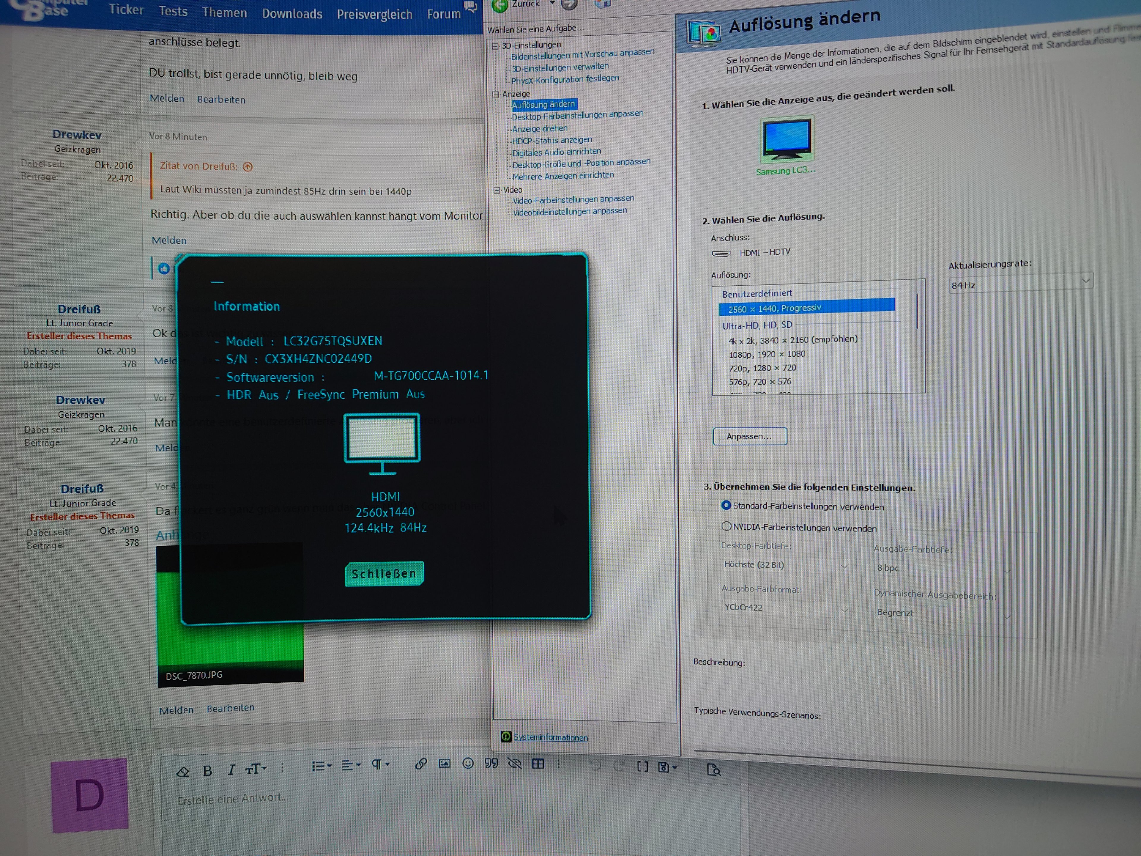 Egal welche einstellung ich nutze an meinem Samsung Odyssey LC32g75TQSUXEN, es bleibt bei 2560x1440 @ 60Hz