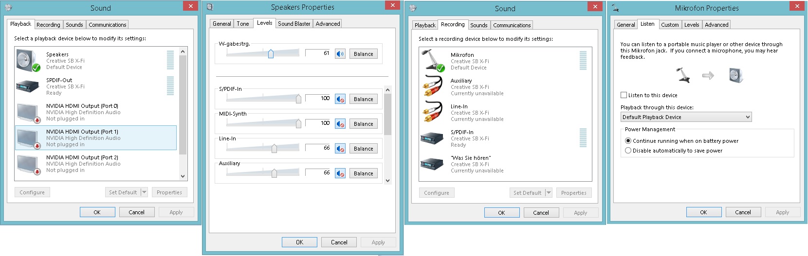Ich habe hier ein Paar Screenshots von meinen Soundeinstellungen.